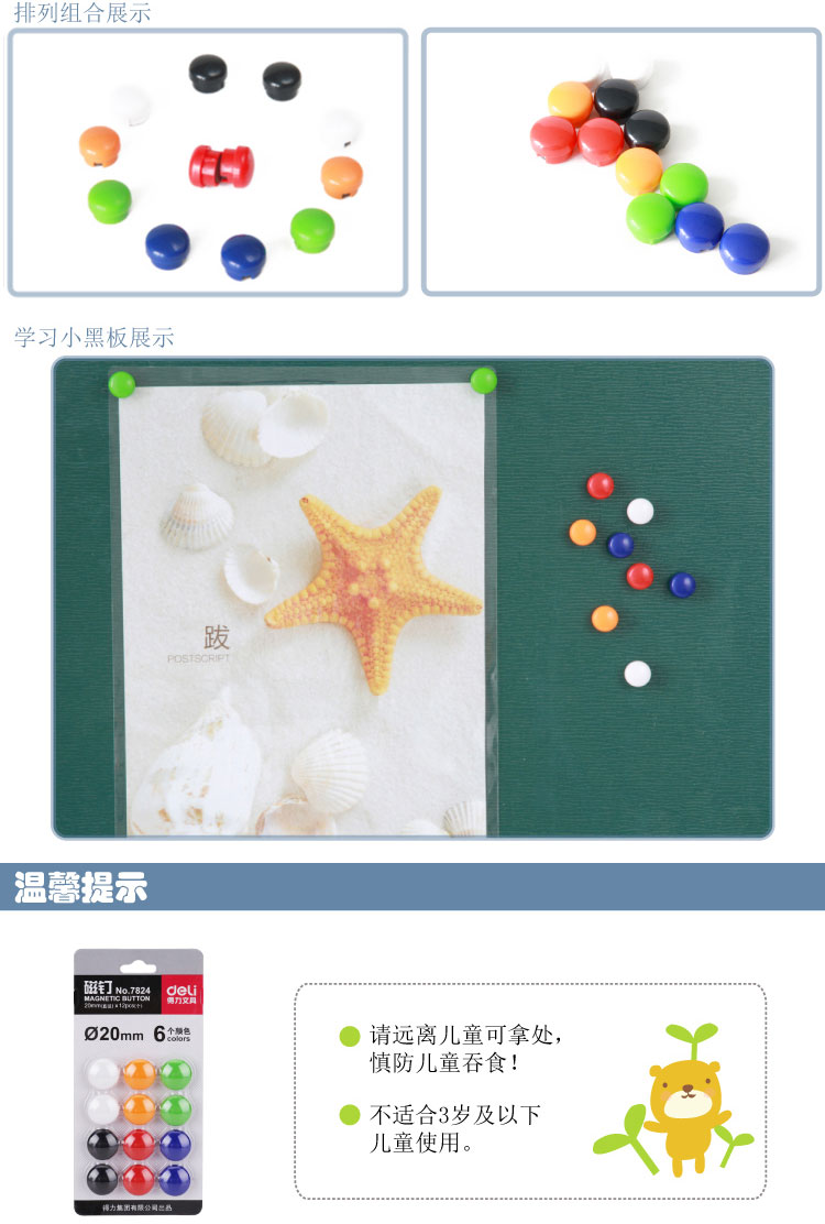得力磁扣 7824白板磁力固定磁扣小磁鐵 20mm 12個(gè)/卡 單位:卡