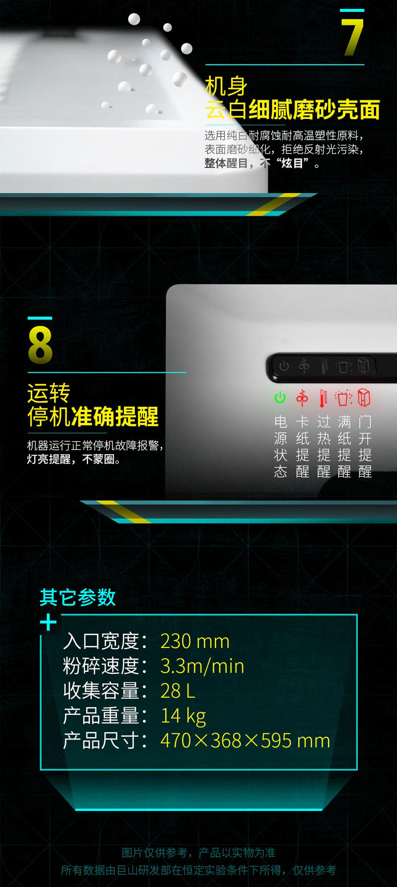 生產(chǎn)制造系中國(guó)保密協(xié)會(huì)會(huì)員單位 安全保護(hù)入紙擋板全面安全 滿紙門(mén)開(kāi)多種運(yùn)行狀態(tài)LED顯示 光盤(pán)分類回收 PWM電流控制確保電機(jī)超靜音
