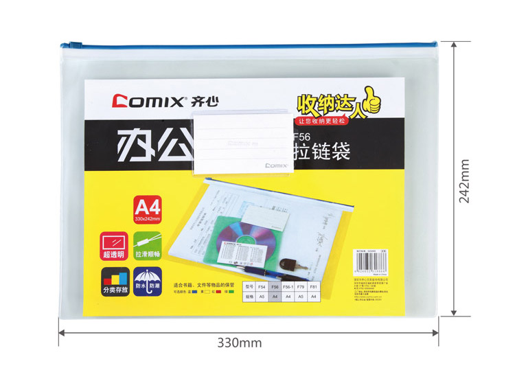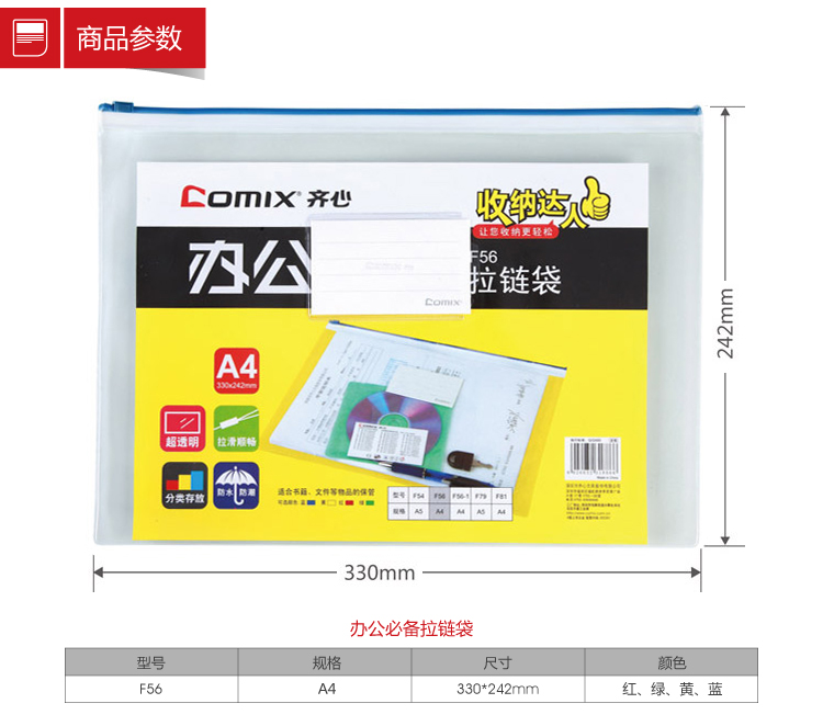 商品名稱:齊心 F56 辦公必備拉鏈袋 A4  基本單位:10個(gè)/袋