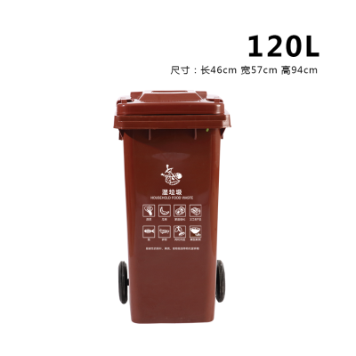 ABEPC 120L帶輪 咖啡色 濕垃圾桶 物業(yè)環(huán)衛(wèi)垃圾分類商用帶蓋分類垃圾桶果皮箱 單個(gè)裝
