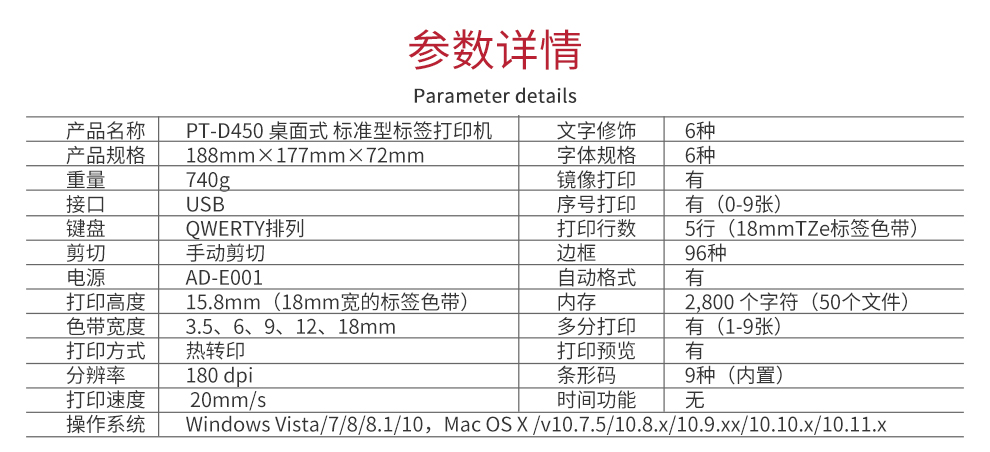 兄弟標(biāo)簽打印機(jī) PT-D450 標(biāo)簽打印機(jī) 單位:臺(tái)