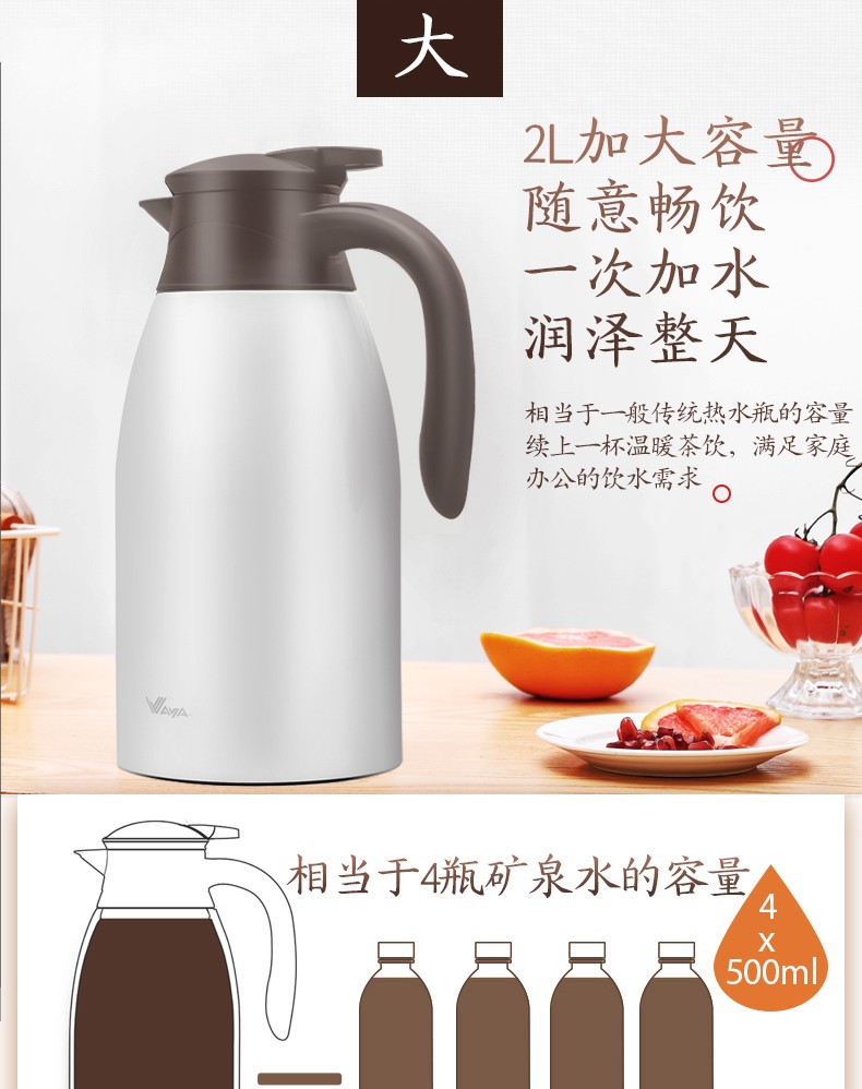 華亞保溫壺家 HK-2000本色 2L 不銹鋼暖水瓶保 單位:個(gè)