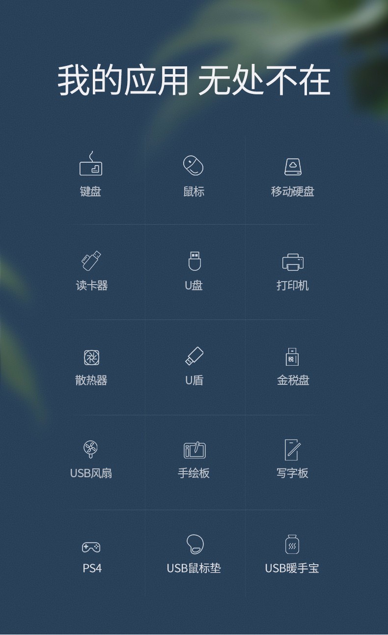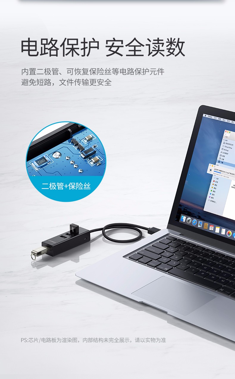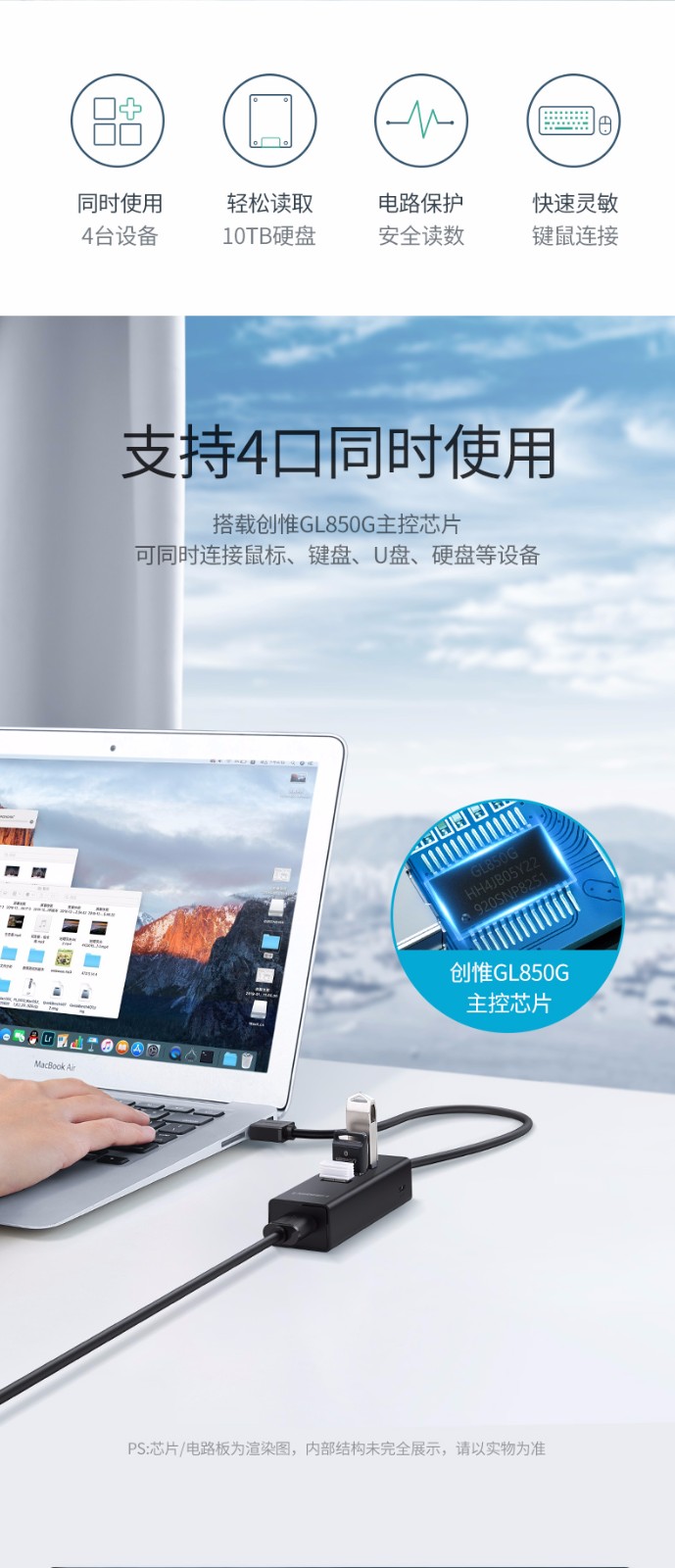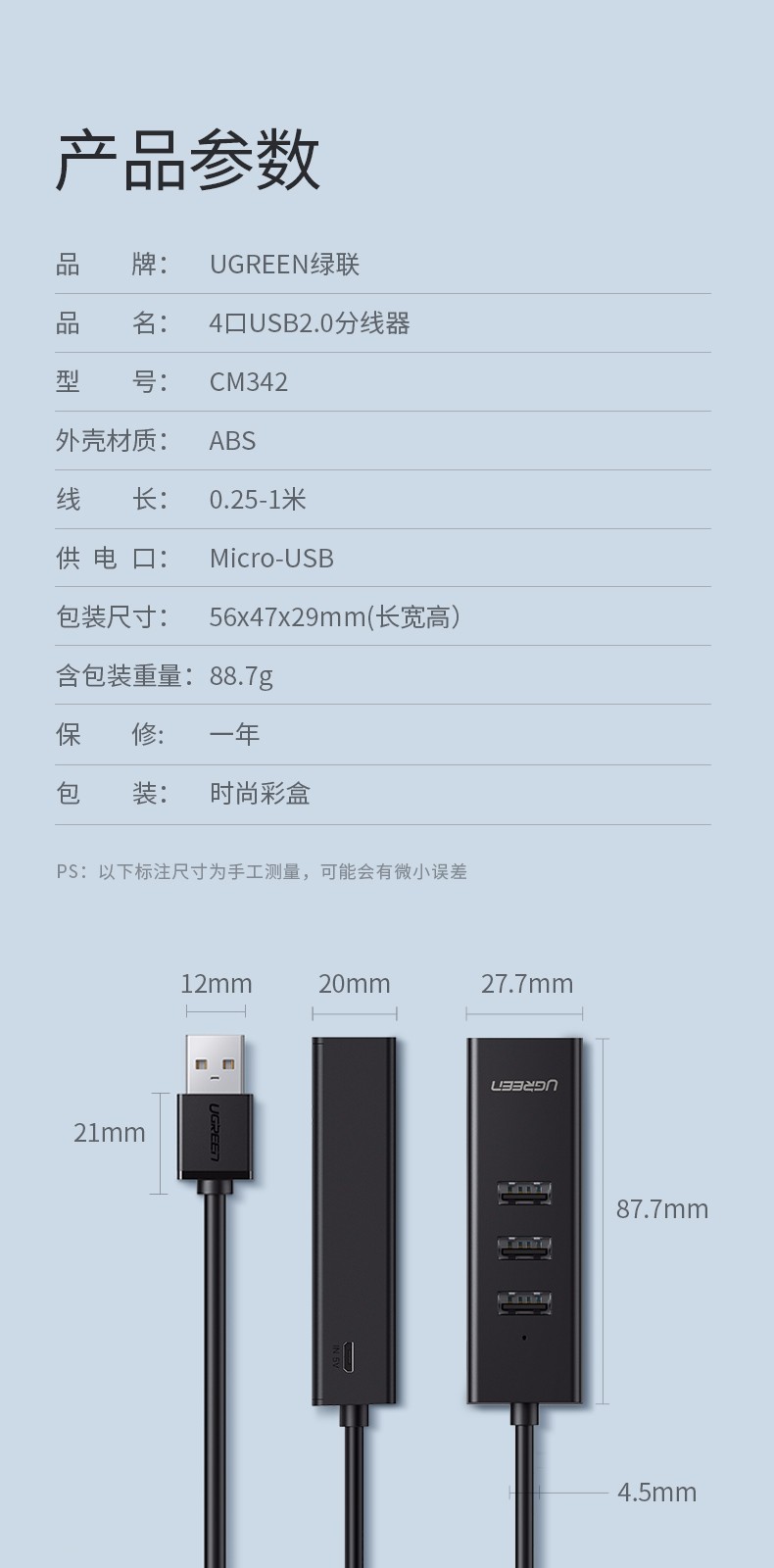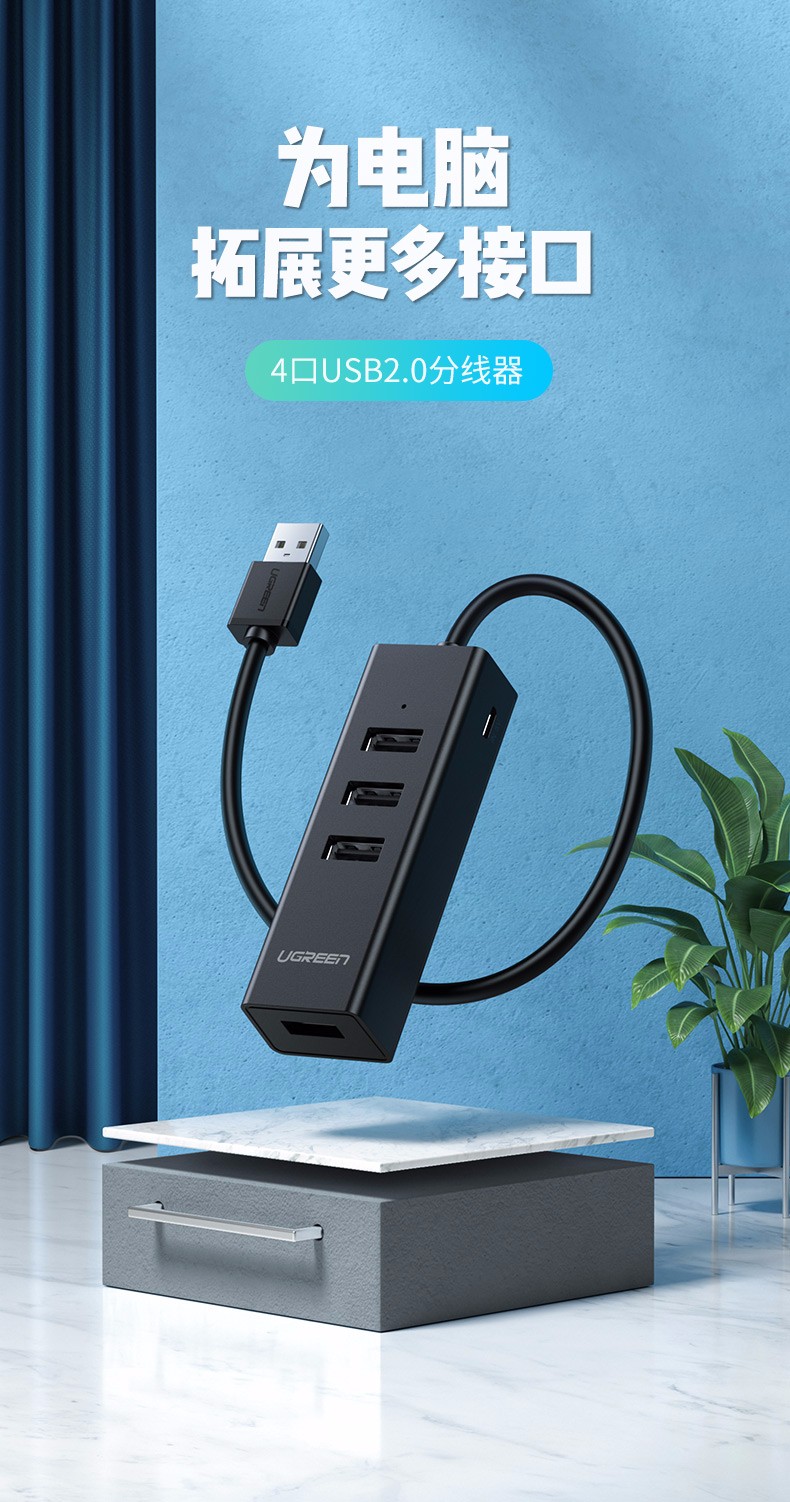 綠聯(lián)分線器 CM342 USB2.0一拖四多功能分線器 0.5米 黑色 單位:個(gè)