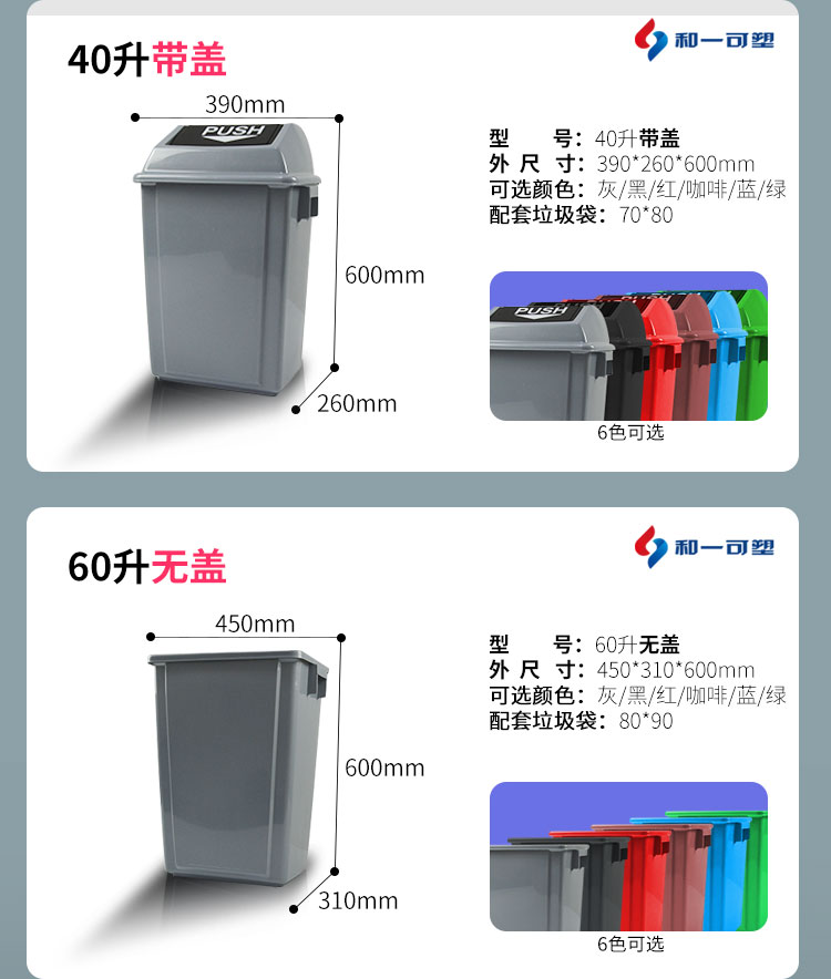 和一 20L搖蓋 藍(lán)色 垃圾桶 彈蓋酒店廚房分類垃圾筒箱戶外帶蓋204060L長方形干濕分離 單個裝