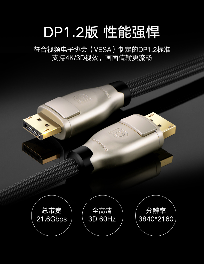 綠聯(lián) DP107 DP高清線公對公轉換線 連接電視顯示器顯卡音視頻線 合金版 DP公對公 1.5米 單個裝