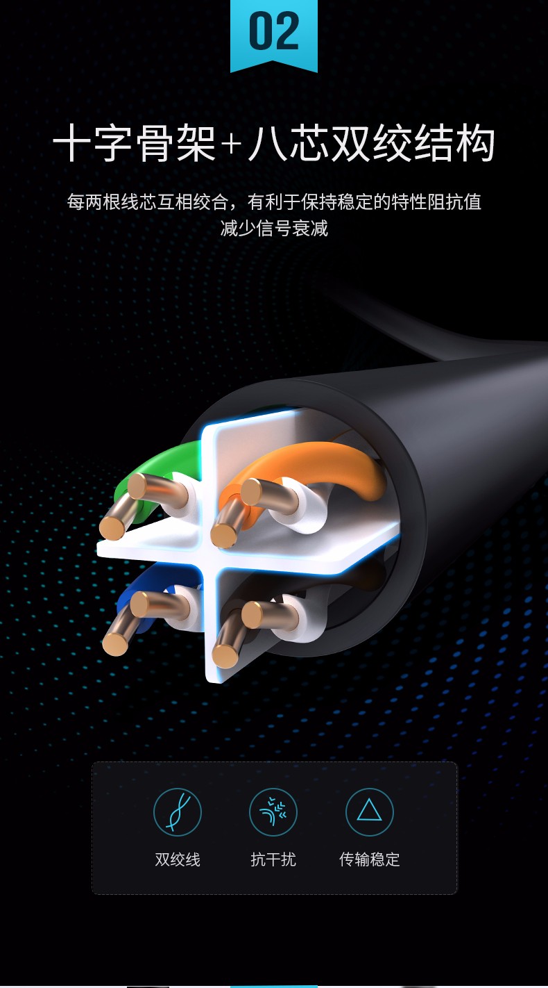 綠聯(lián)網(wǎng)線 NW101 CAT6類純銅八芯雙絞非屏蔽千兆高速網(wǎng)絡(luò)跳線 1米 單位:根