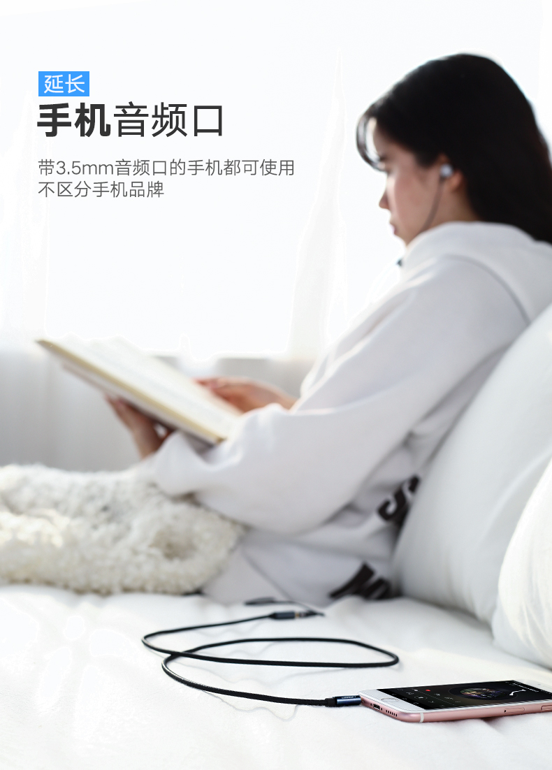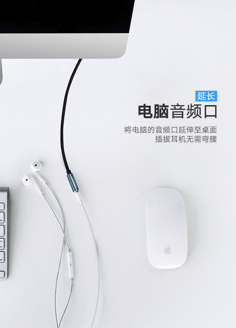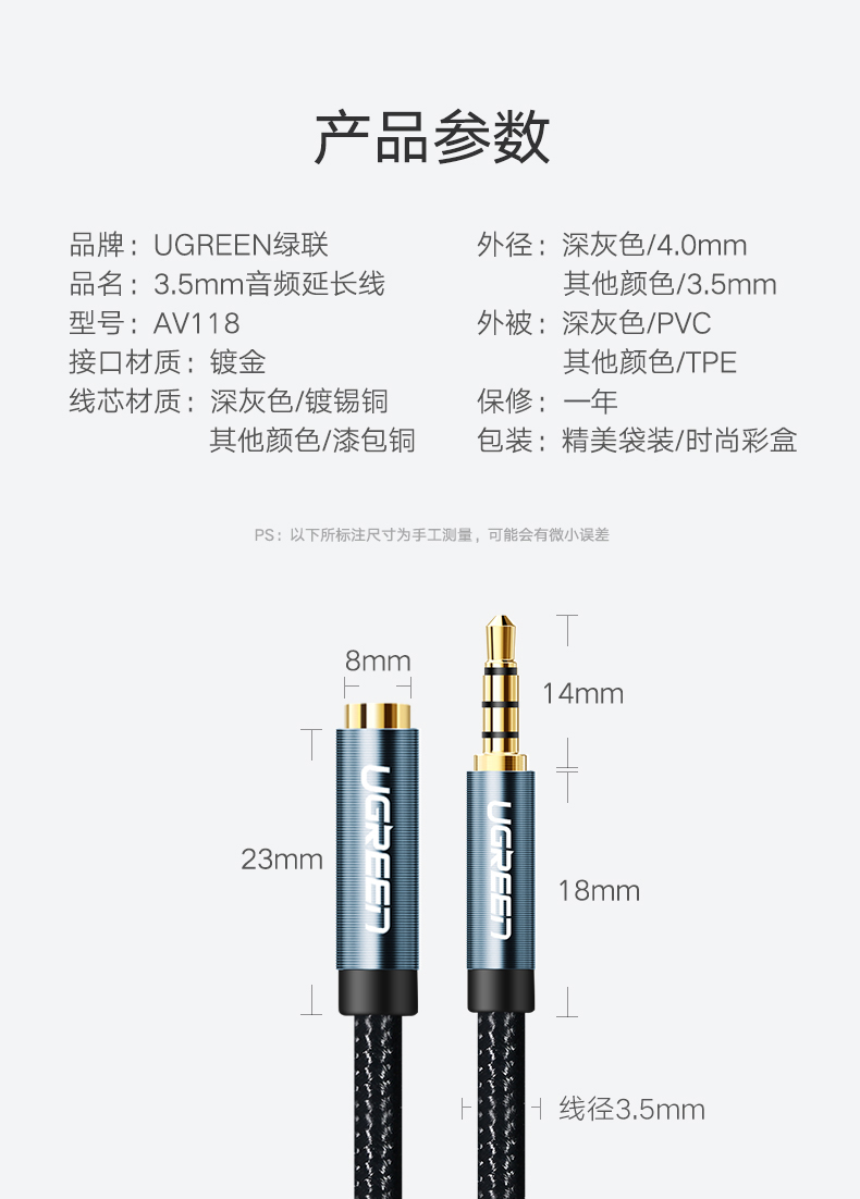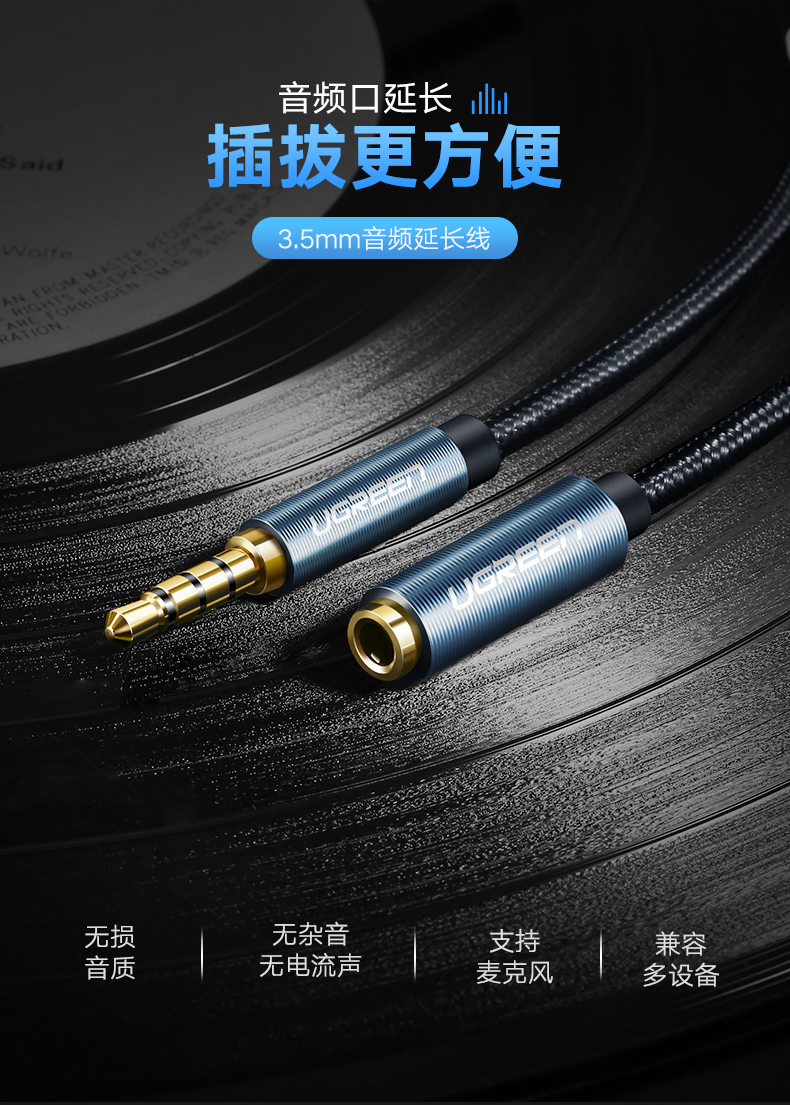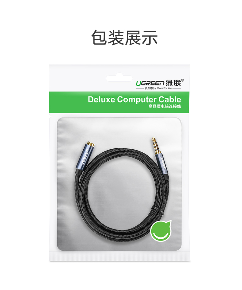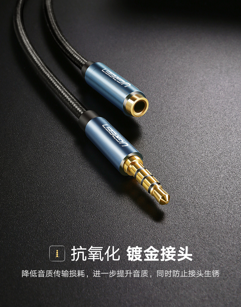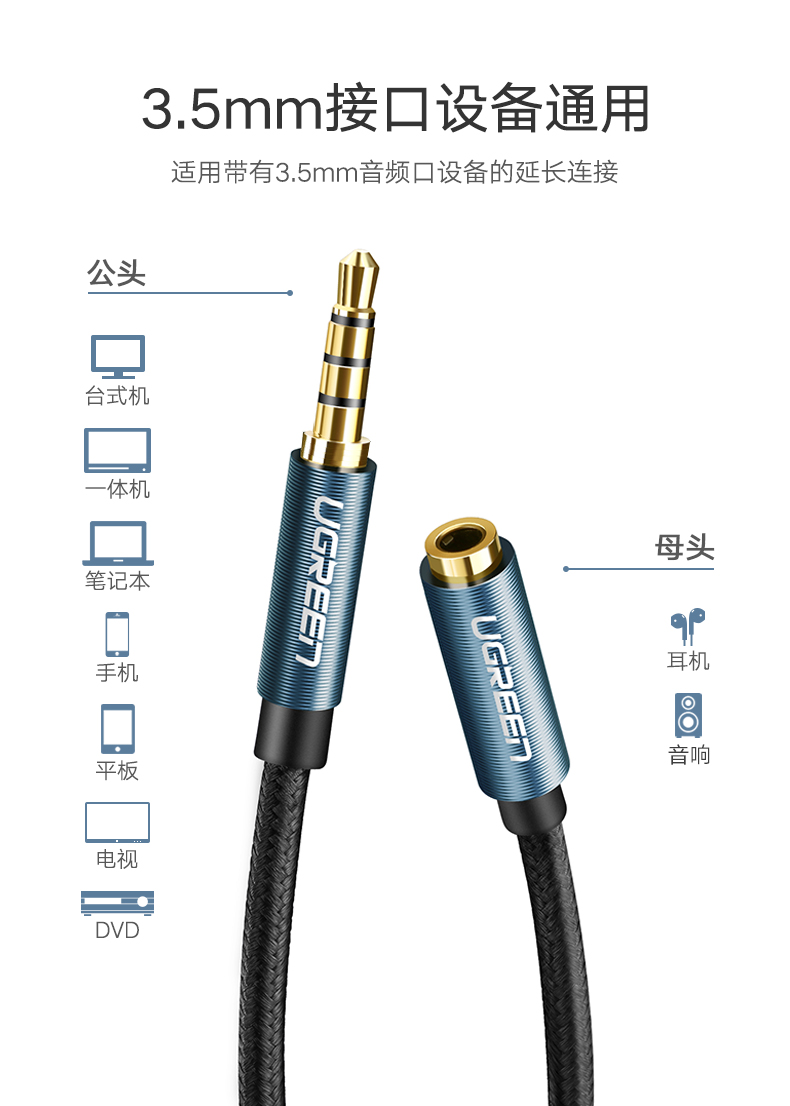 綠聯(lián) AV118 3.5mm音頻線公對母 轉接AUX車載音響箱加長 3米 灰色 單個裝