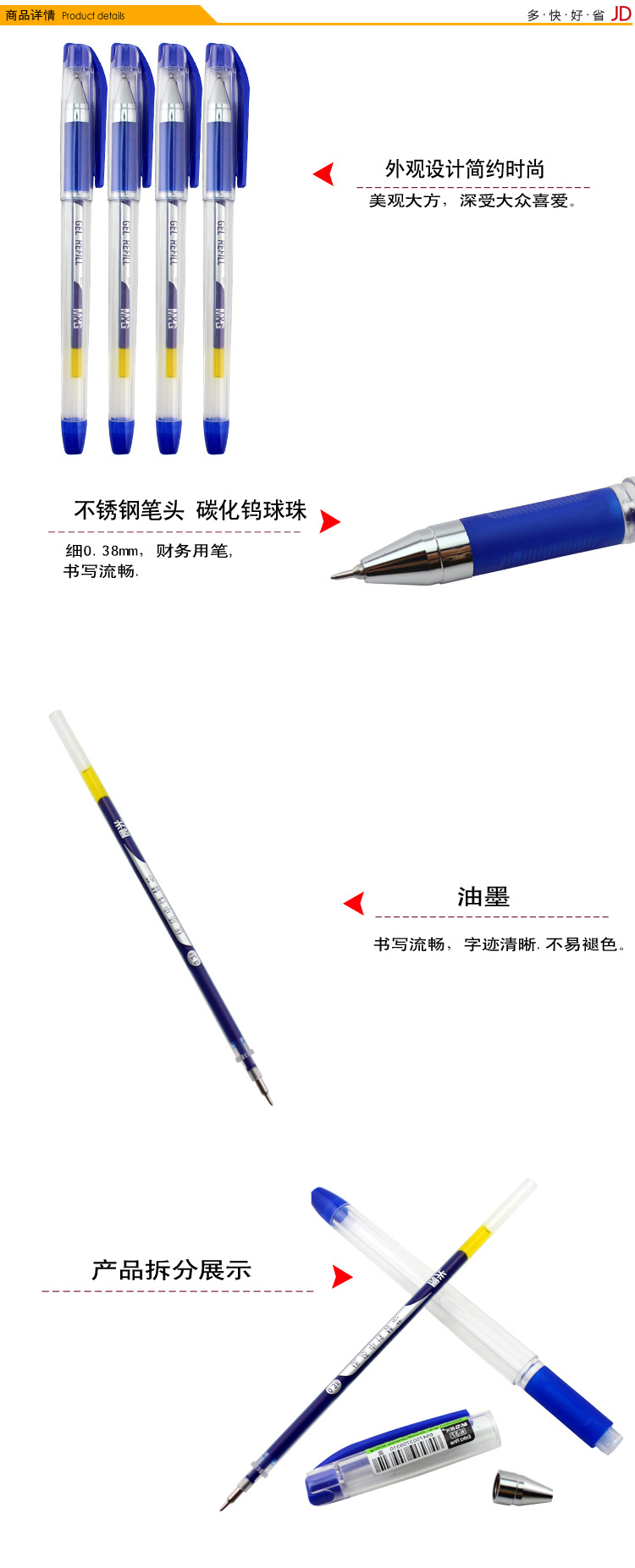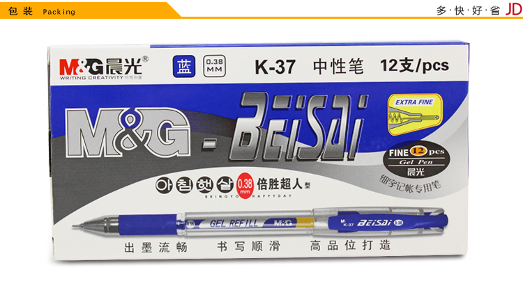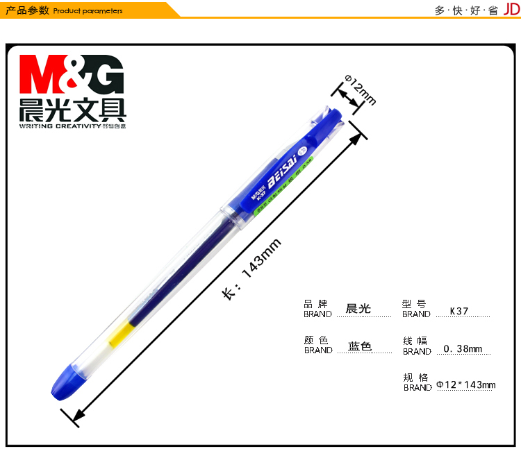 晨光 K37 0.38mm簽字筆 藍(lán)色 12支/盒