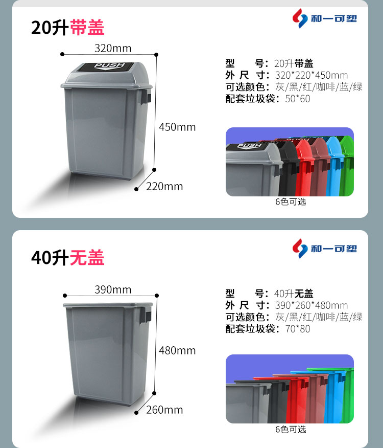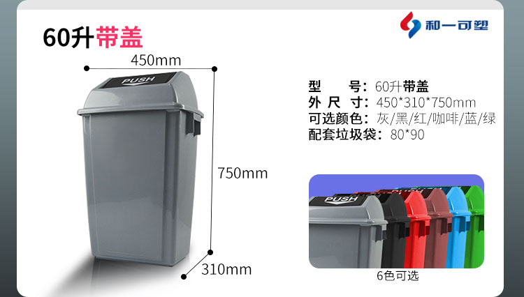 和一 60L搖蓋 綠色 垃圾桶 彈蓋酒店廚房分類垃圾筒箱戶外帶蓋204060L長方形干濕分離 單個(gè)裝