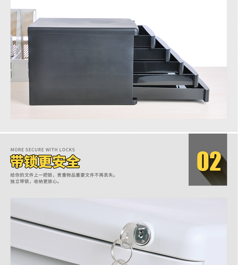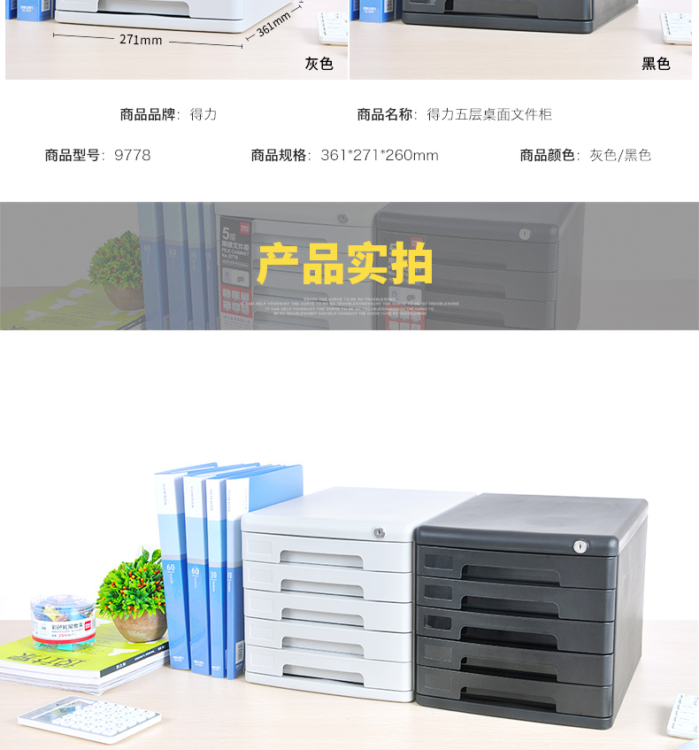 得力文件柜 9778 桌面資料整理文件柜5層帶鎖 灰色 單位:個(gè)
