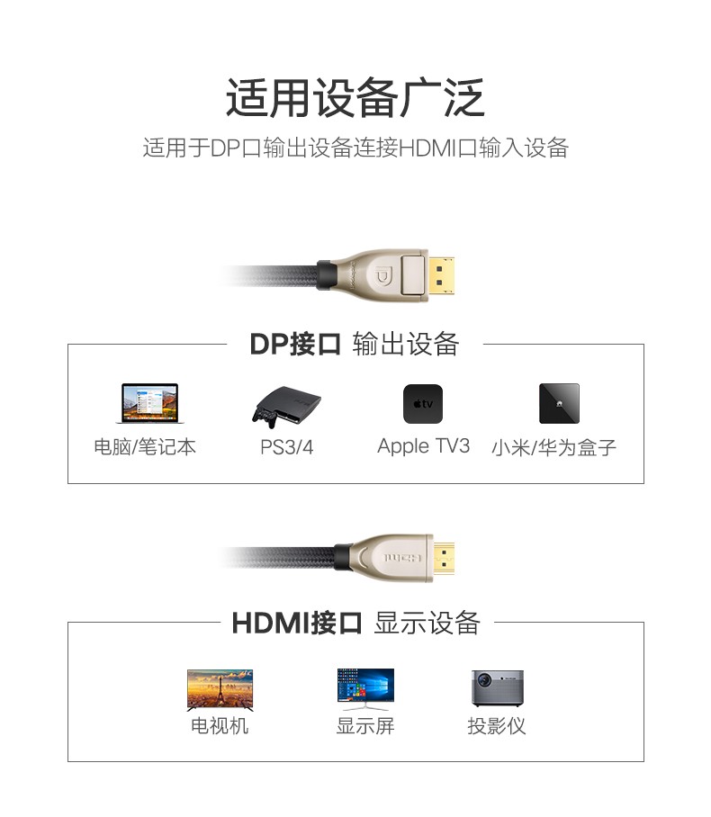 綠聯(lián) DP111 DP轉(zhuǎn)hdmi轉(zhuǎn)換線公對公 4K/60Hz高清主動(dòng)式轉(zhuǎn)接線 筆記本電腦臺式機(jī)接電視顯示器視頻線 合金外殼 1.5米 單個(gè)裝