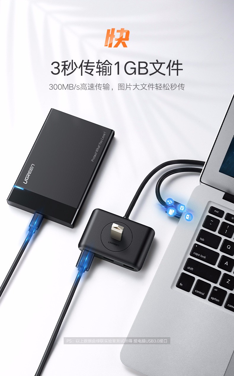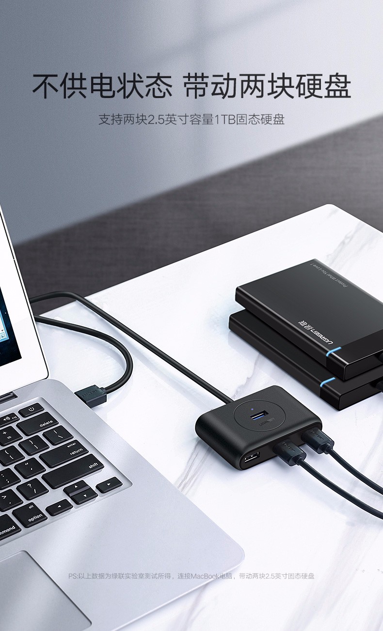 綠聯(lián) CR113 USB3.0分線器HUB集線器一拖四OTG集線器電腦筆記本高速type-c口擴展HUB【USB款】 0.5 黑色 單個裝