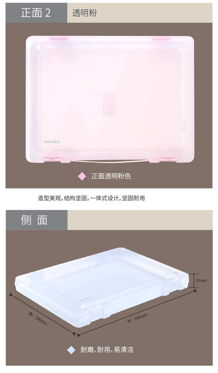 得力 A4透明便攜卡扣文件盒 PP材質環(huán)保耐用資料收納盒 35mm厚度 5702