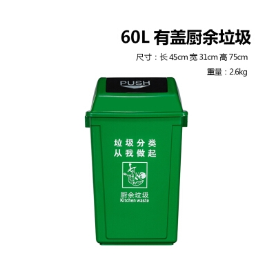 古達(dá) 60L搖蓋 綠色 廚余垃圾分類(lèi)垃圾桶帶蓋 飯店餐飲可回收廚余環(huán)衛(wèi)有害戶(hù)外四分類(lèi) 單個(gè)裝