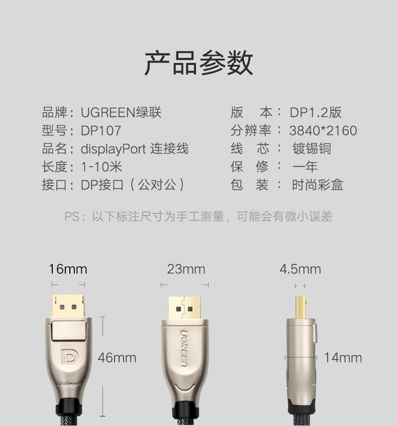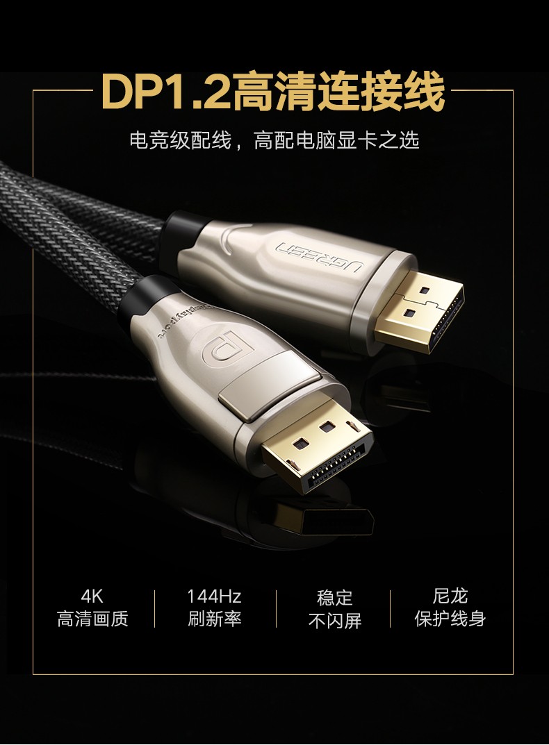 綠聯(lián) DP107 dp高清線公對公轉(zhuǎn)換線適用Thinkpad筆記本戴爾電競電腦臺式機連接電視顯示器顯卡音視頻線 合金版 DP公對公 2米 單個裝