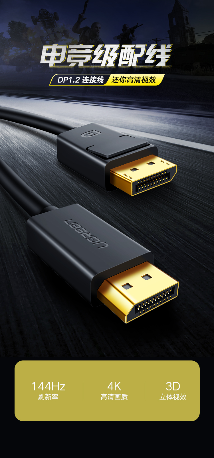 綠聯(lián) DP102 DP高清線1.2版 2K*4KDisplayPort公對公接線 筆記本電腦顯卡連接顯示器視頻線 3米 單個裝