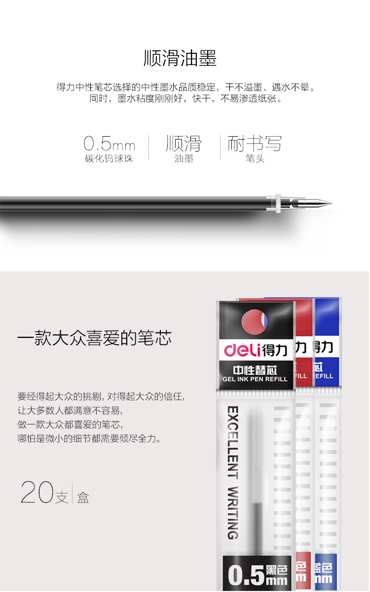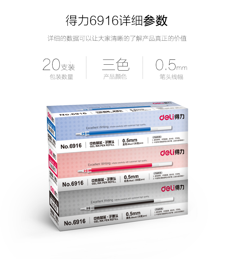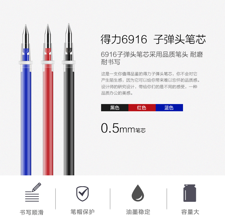 得力(deli)6916子彈頭0.5mm筆芯 單位:盒