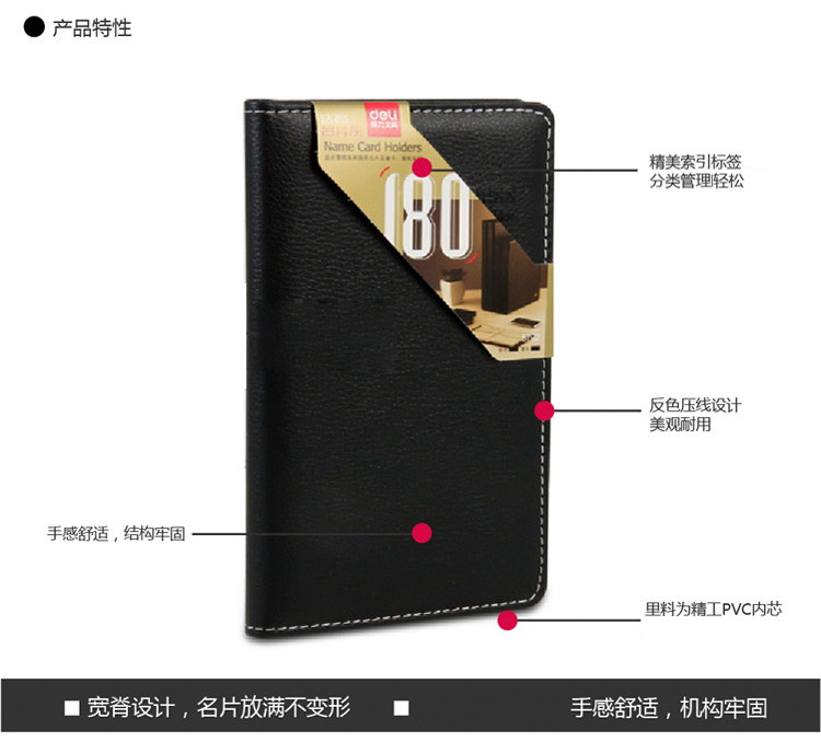 得力名片冊(cè) 5792 (180枚)皮面攤開式名片冊(cè) 單位:個(gè)