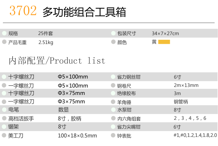 得力工具套裝 3702 多功能組合工具箱/工具套裝 25件套 單位:套