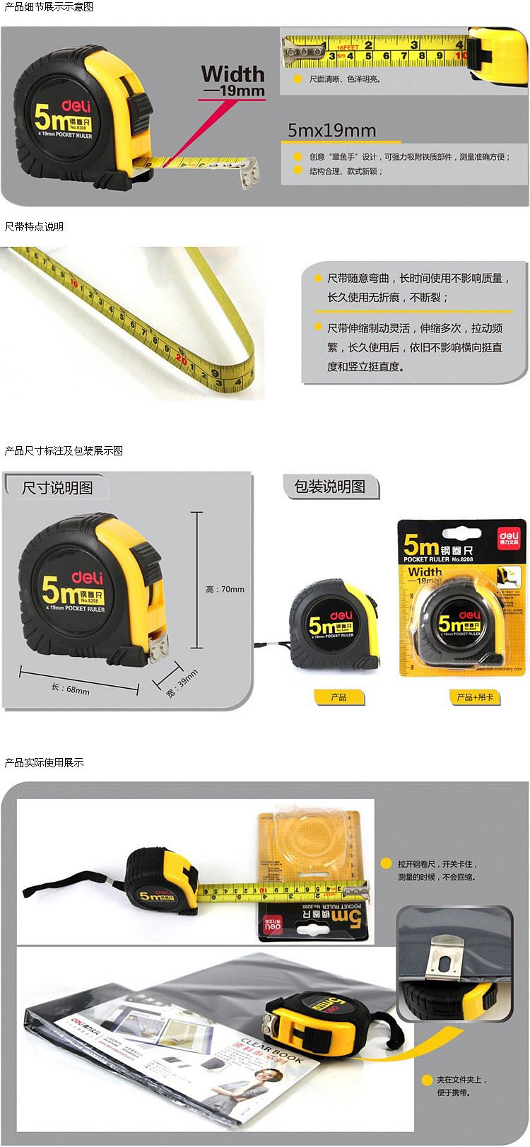 得力卷尺 8208 5米全包膠鋼卷尺 單位:個(gè)