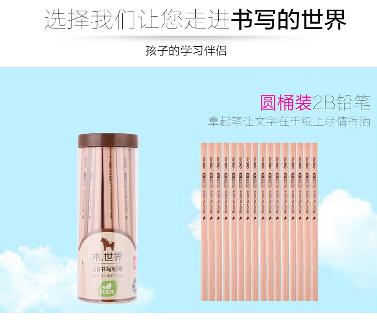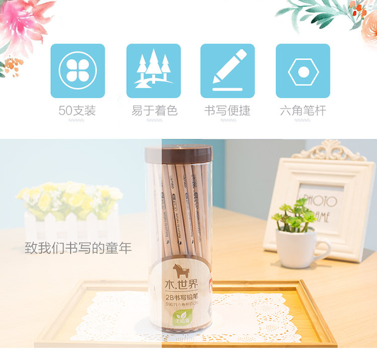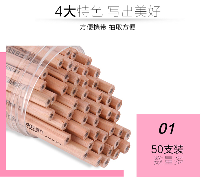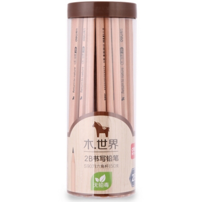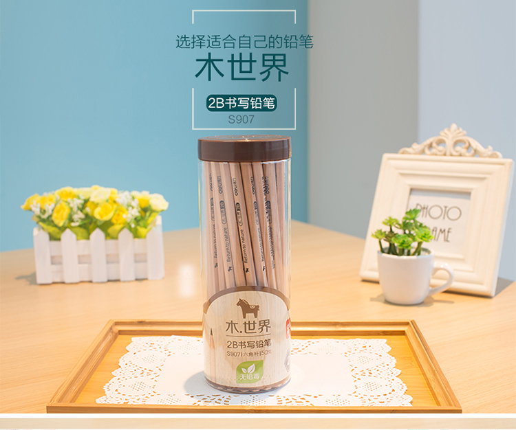 得力鉛筆 S907六角筆桿原木2B 單位:50支/桶