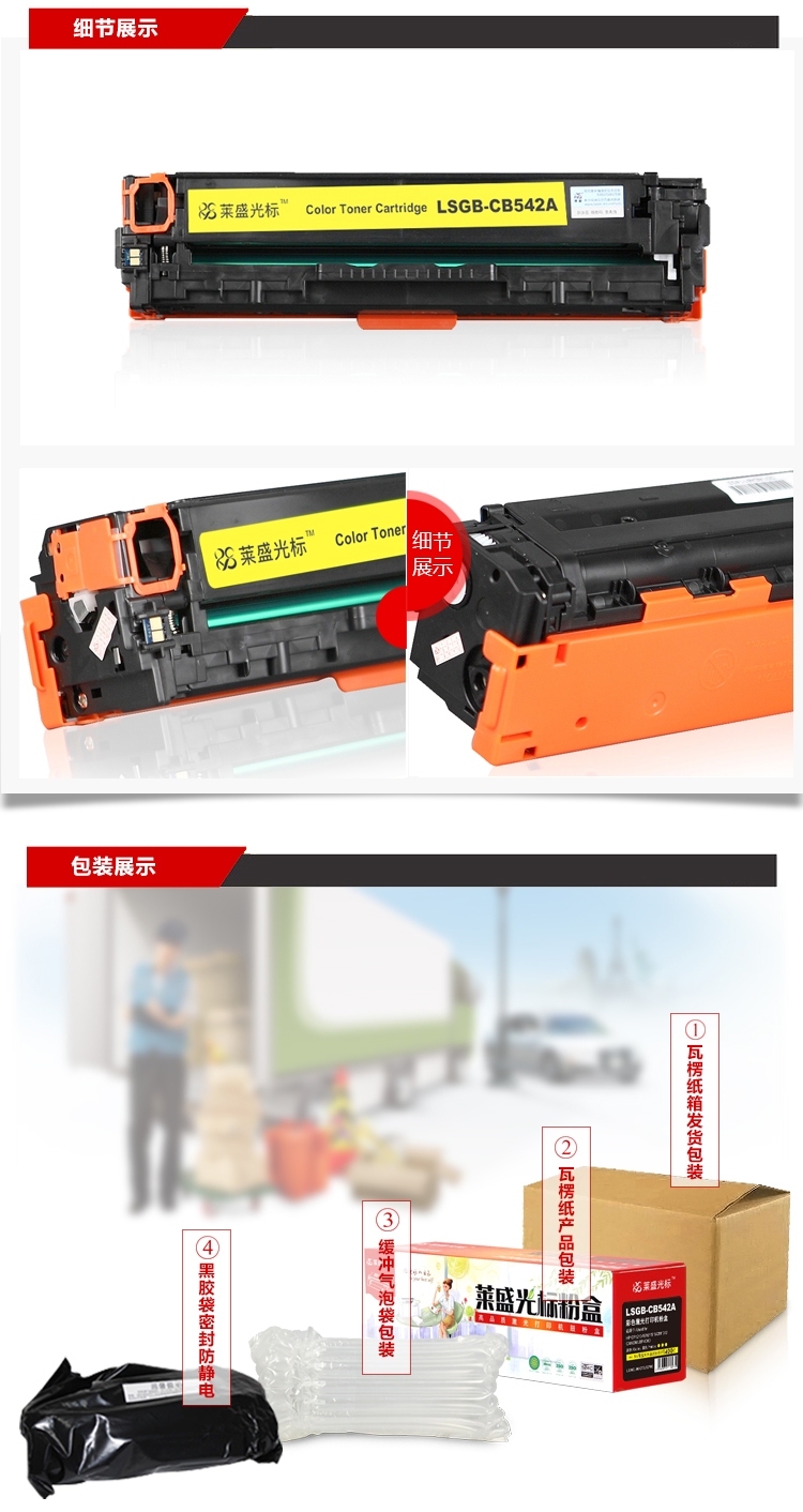 萊盛光標 LSGB-CB542A 黃色硒鼓 適用:HP CP1215/1515/1518/CM1312 單位:支