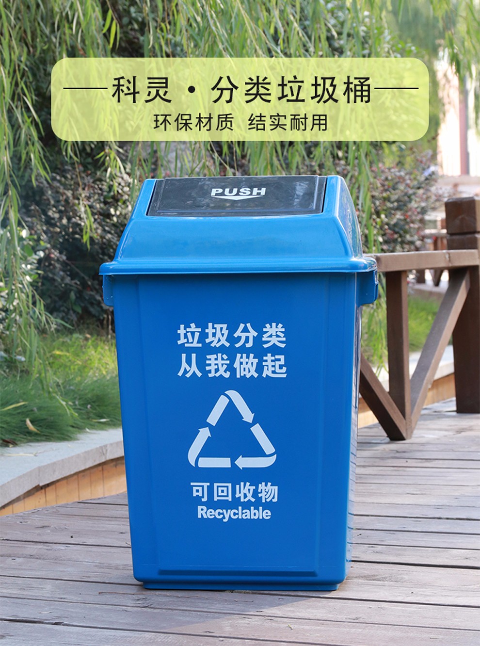 科靈 20L搖蓋 綠色 廚余垃圾分類垃圾桶帶蓋 飯店餐飲可回收廚余環(huán)衛(wèi)有害戶外四分類 單個(gè)裝