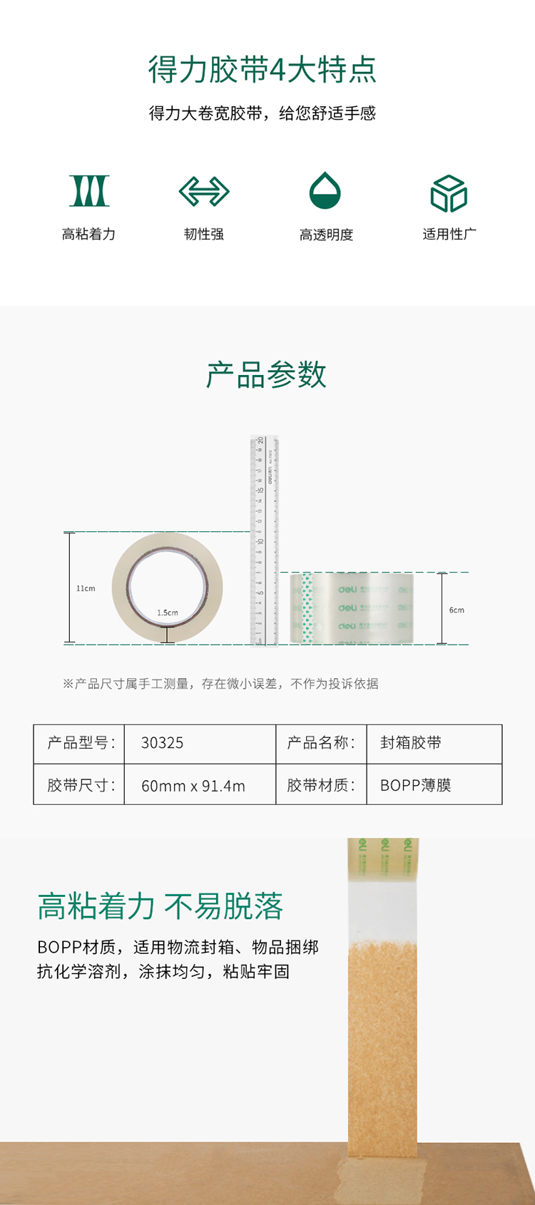 得力膠帶 30325 大卷封箱帶膠帶膠布透明膠封口帶寬 60mm*100y 單位:卷