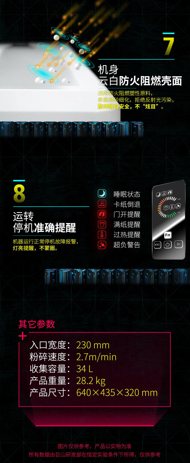 粉碎耗能觸屏顯示 卡紙自動反轉(zhuǎn)保護 具有LED觸屏顯示運行自檢功能 收集箱內(nèi)置LED藍(lán)光顯示 門開過熱卡紙觸屏顯示