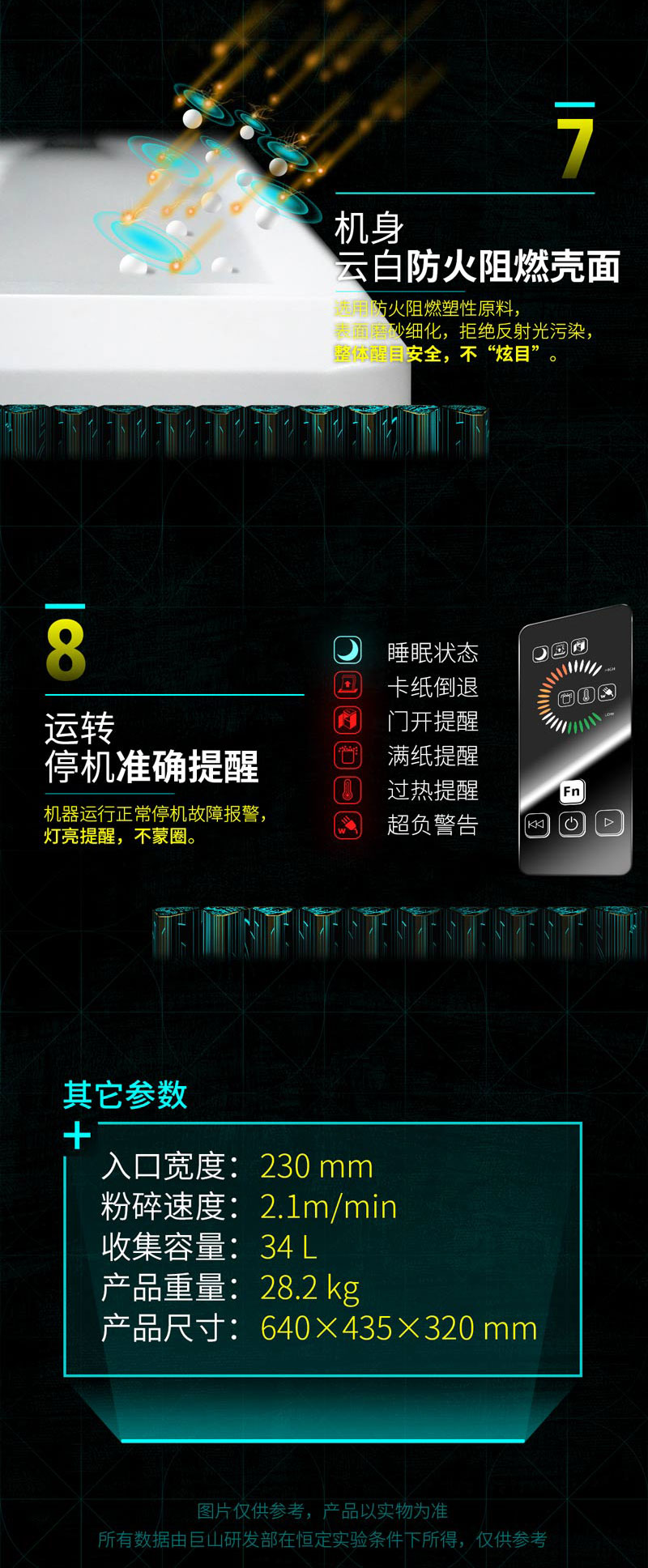 風(fēng)冷系統(tǒng)確保機(jī)器高效持久運(yùn)行 PWM電流控制確保電機(jī)超靜音 信用卡光盤U盤顆粒粉碎 半小時(shí)進(jìn)入休眠,1小時(shí)不用自動(dòng)斷電
