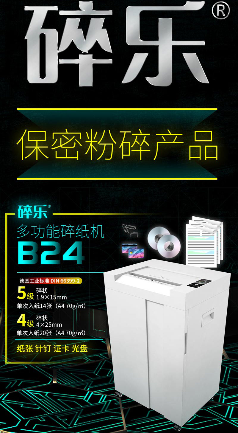 碎樂碎紙機 B24 德[DIN 66399]7級保密 絕密級辦公碎紙機 單位:臺