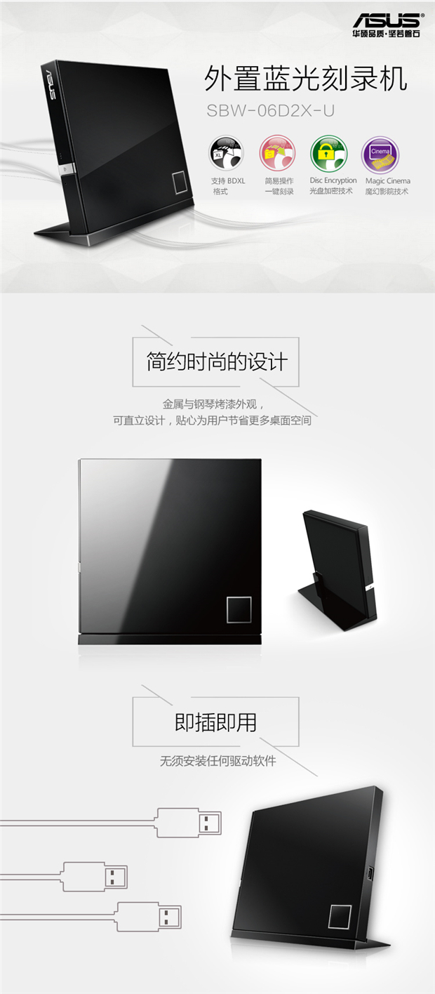華碩外置光驅(qū) SBW-06D2X-U 黑色(兼容蘋果系統(tǒng)) 單位:個