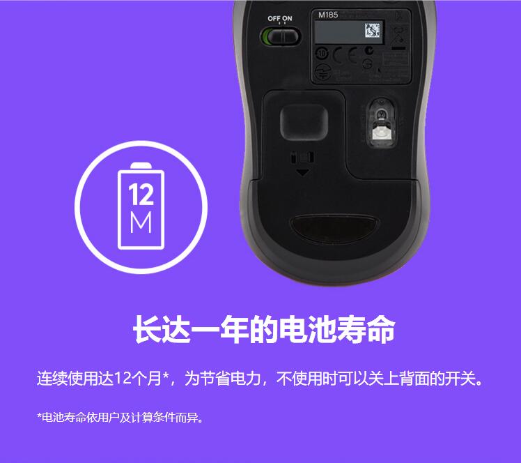 羅技鼠標(biāo) M185(M186)無(wú)線鼠標(biāo) 黑色灰邊 單位:個(gè)