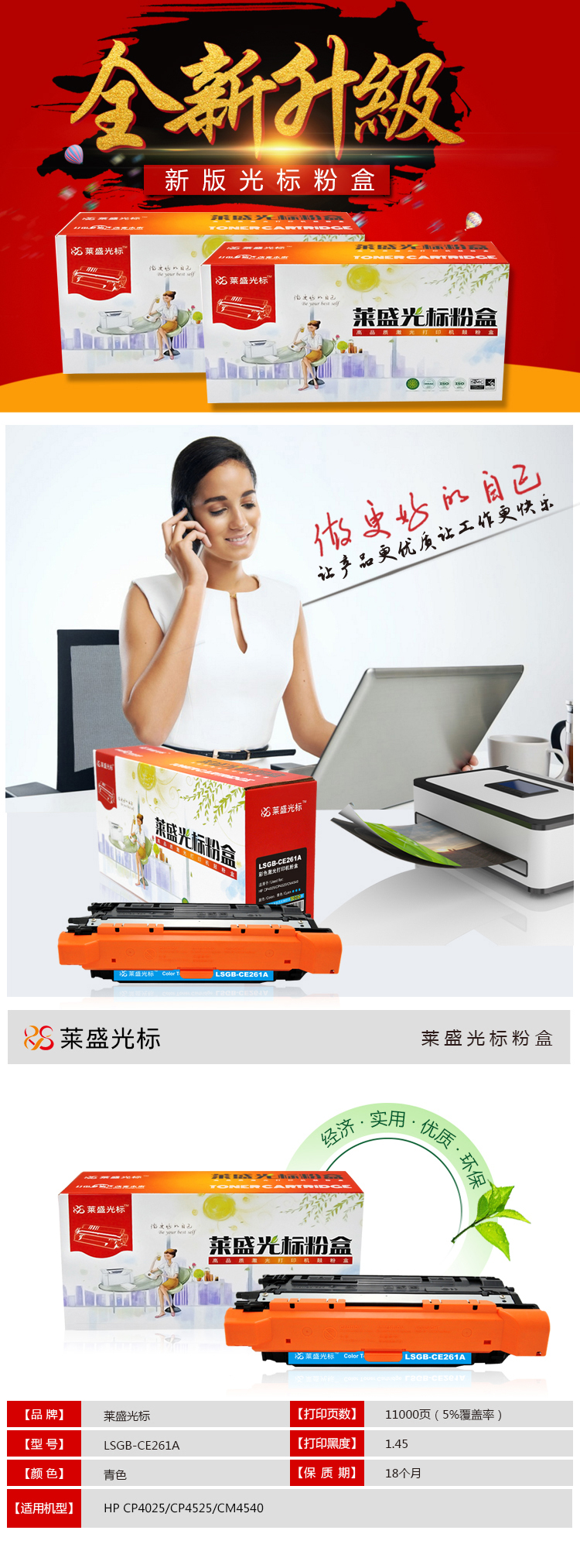 萊盛光標(biāo) LSGB-CE261A 青色粉盒 適用:HP CP4025/CP4525/CM4540 單位:支