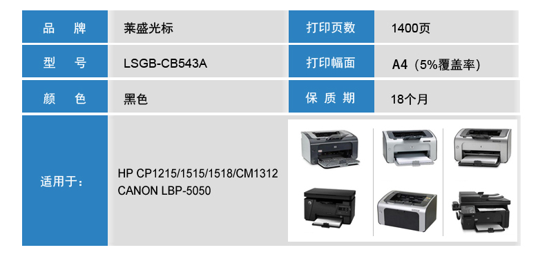 萊盛光標(biāo) LSGB-CB543A 紅色粉盒 適用:HP CP1215/1515/1518/CM1312 單位:支