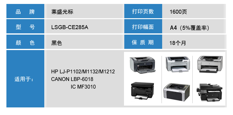 萊盛光標 LSGB-CE285A 黑色粉盒 適用:HP LJ-P1102/M1132/M1212 CANON LBP-6018 單位:支