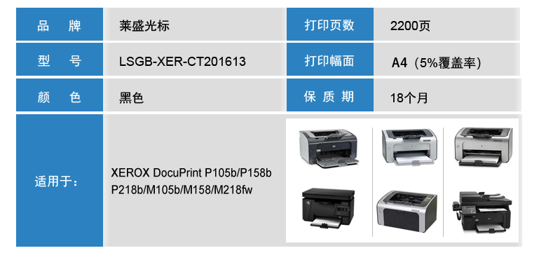 萊盛光標(biāo) LSGB-XER-CT201613 黑色粉盒 適用:XEROX DocuPrint P105b/P158b 單位:支