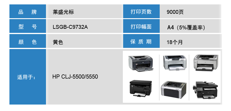 萊盛光標(biāo) LSGB-C9732A 黃色粉盒 適用:HP CLJ-5500/5550 單位:支