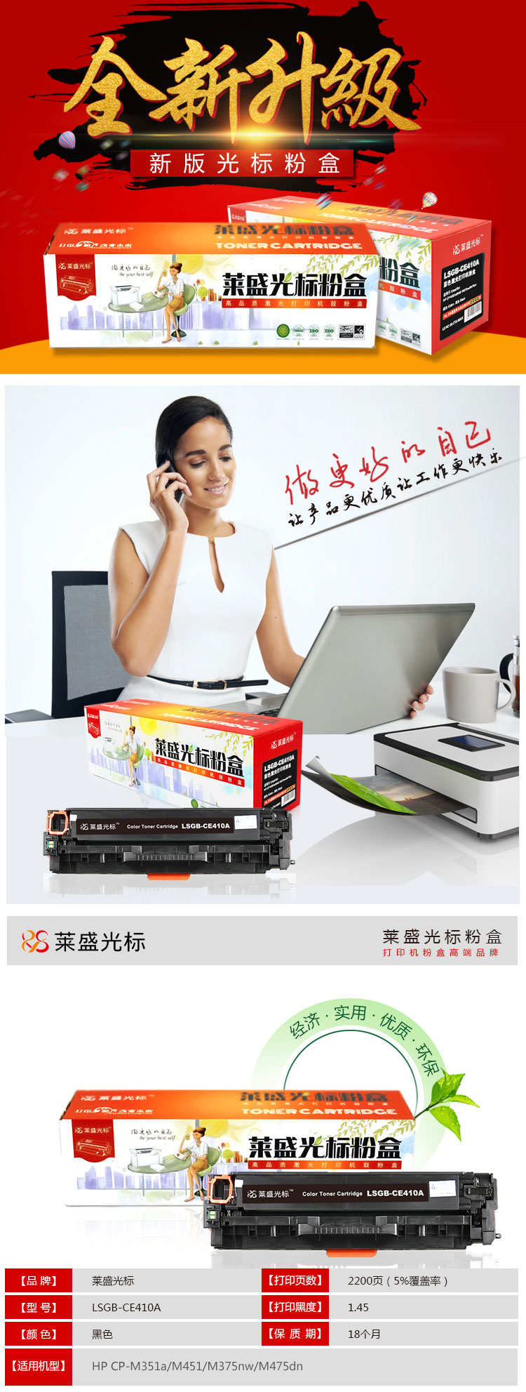 萊盛光標(biāo) LSGB-CE410A 黑色粉盒 適用 HP CP-M351a/M451/M375nw/M475dn 單位:支