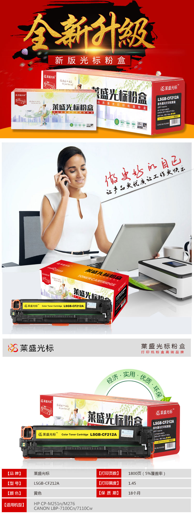 萊盛光標(biāo) LSGB-CF212A 黃色粉盒 適用:HP CP-M251n/M276 CANON LBP-7100Cn 單位:支