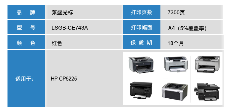 萊盛光標(biāo) LSGB-CE743A 紅色粉盒 適用:HP CP5225 單位:支