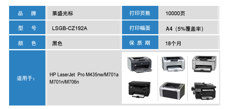 萊盛光標 LSGB-CZ192A 黑色粉盒 適用:HP LJ-M701a/M701n/M706n/M435nw 單位:支