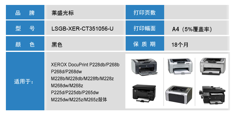 萊盛光標(biāo) LSGB-XER-CT351056-U 黑色硒鼓 適用于XEROX DocuPrint P228db/P268b
