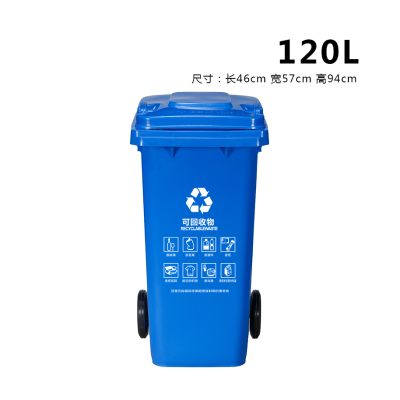 ABEPC 120L帶輪 藍色 可回收垃圾桶 物業(yè)環(huán)衛(wèi)垃圾分類商用帶蓋分類垃圾桶果皮箱 單個裝