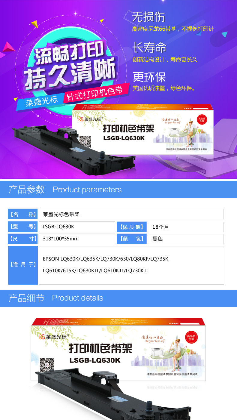 萊盛光標(biāo) LSGB-LQ630K 色帶架 適用:LSGB-EPSON LQ-630/630K/635K/730K,LQ80K 單位:支