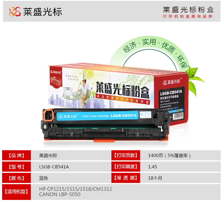 萊盛光標(biāo) LSGB-CB541A 青色硒鼓 適用:HP CP1215/1515/1518/CM1312 單位:支