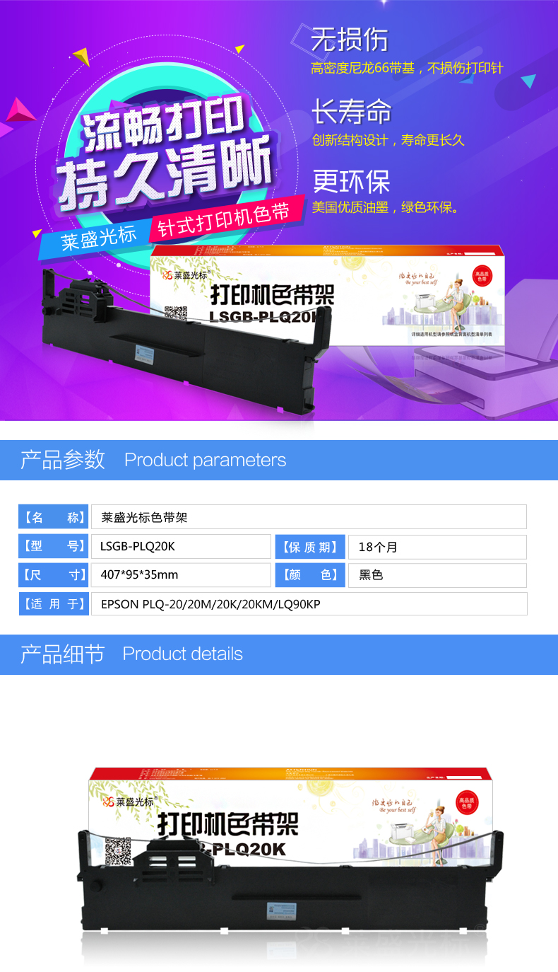 萊盛光標(biāo) LSGB-PLQ20K 色帶架 適用:EPSON PLQ-20/20M/20K/20KM,LQ-90KP 單位:支