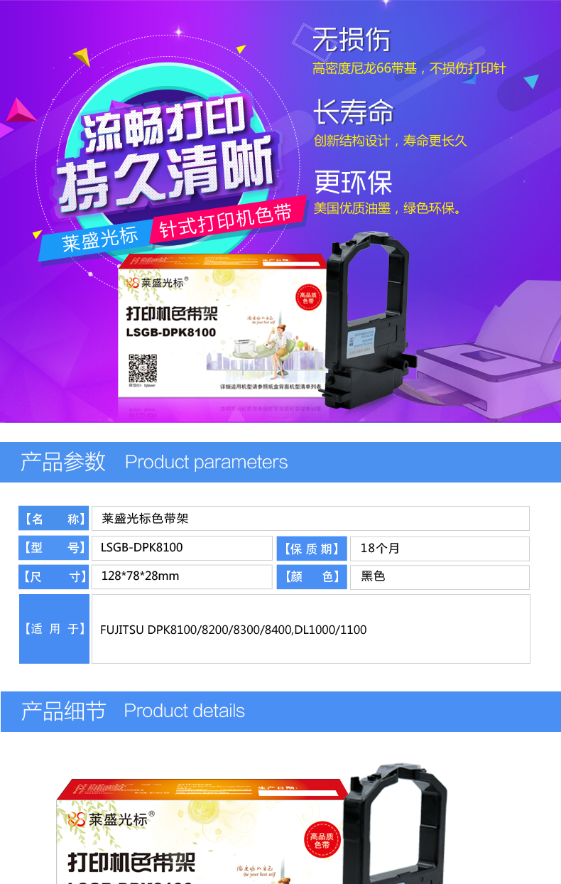 萊盛光標(biāo) LSGB-DPK8100 色帶架 適用FUJITSU DPK8100/8200/8300/8400,DL1000/1100 單位:支