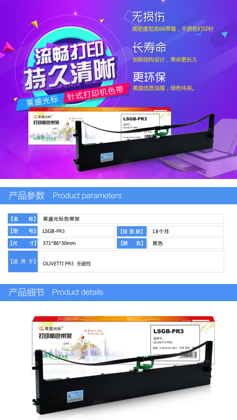 萊盛光標 LSGB-PR3 色帶架 黑色 適用:OLIVETTI PR3 單位:支