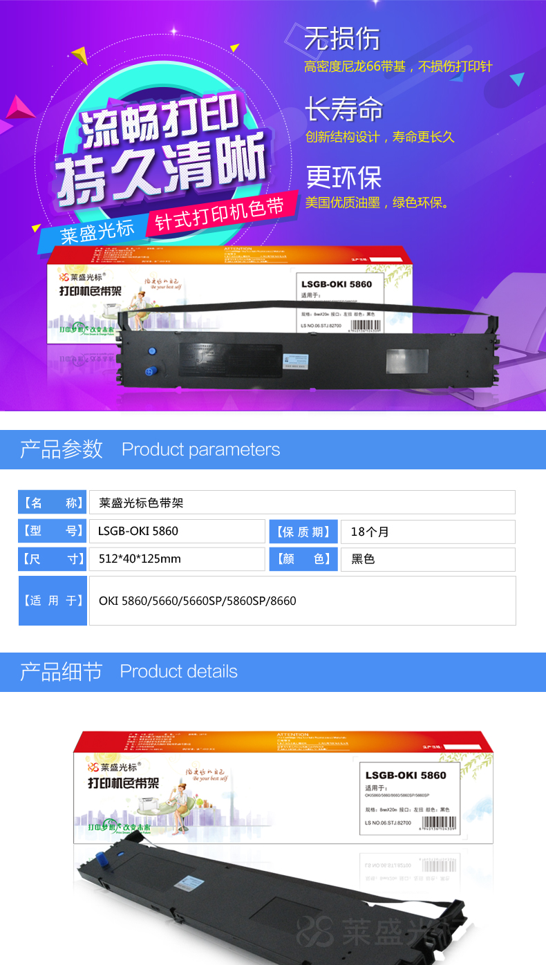 萊盛光標 LSGB-OKI 5860 色帶架 黑色 適用:OKI 5860/5660/5660SP/5860SP/8660 單位:支